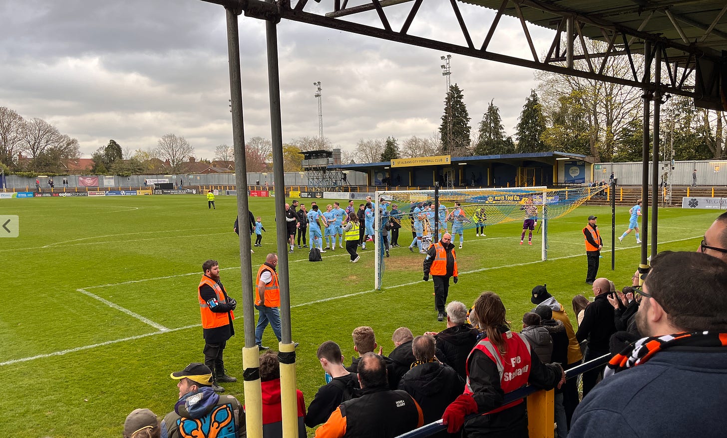 It got there with a win at St Albans, watched by a big crowd, including more than 400 Folkestone fans. And me.
